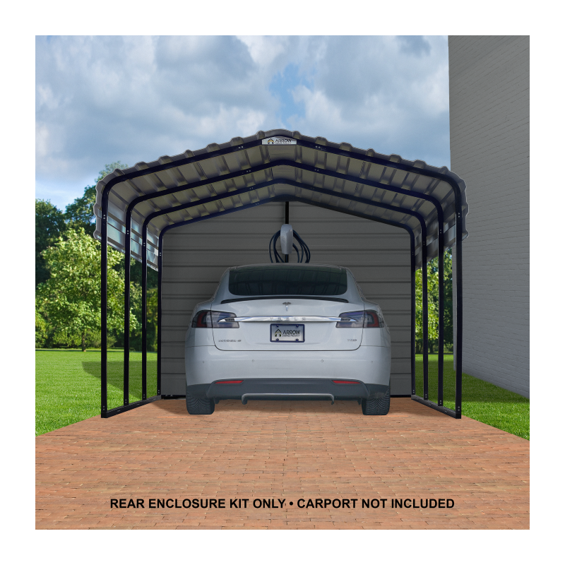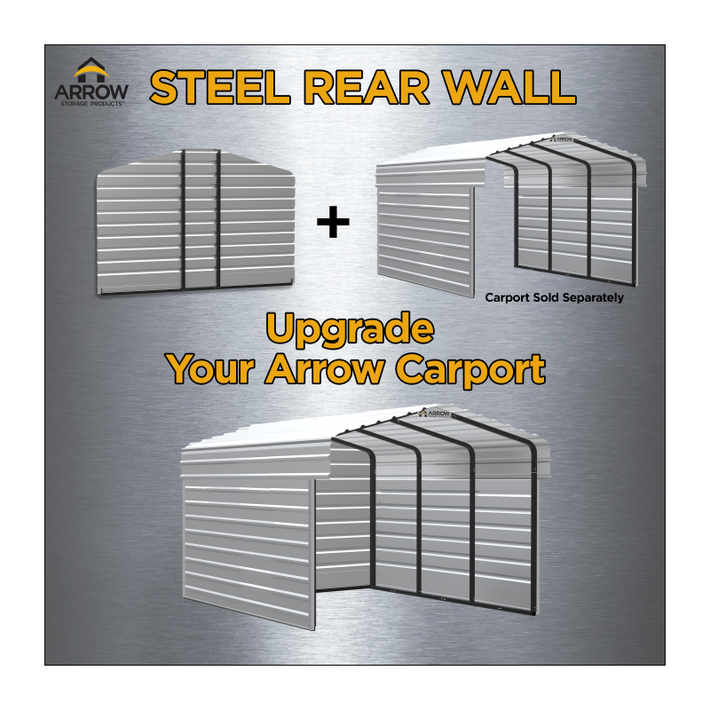 Add a New Rear Panel to your Existing Arrow Carport using this Rear Wall Kit. The heavy-duty galvanized steel panels are color-matched to the roof of the Arrow Carport and can be attached with the provided hardware and framing to safeguard against wind and rain. This addition works well for both residential and commercial spaces. With this rear wall, vehicles can be sheltered from the weather which reduces maintenance and enhances value. This rear wall kit protects and secures your possessions, whether you park, store items, or work in your arrow carport. The Arrow Steel Carport Rear Wall Kit is readily available for residential and commercial structures, making it an ideal outdoor storage solution. Get the Arrow Steel Carport 12x7 Rear Wall Kit in Charcoal to fortify your security and protection for your possessions today. Order today to boost the functionality of your outdoor area with this rear wall kit.