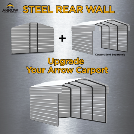 Add a New Rear Panel to your Existing Arrow Carport using this Rear Wall Kit. The heavy-duty galvanized steel panels are color-matched to the roof of the Arrow Carport and can be attached with the provided hardware and framing to safeguard against wind and rain. This addition works well for both residential and commercial spaces. With this rear wall, vehicles can be sheltered from the weather which reduces maintenance and enhances value. This rear wall kit protects and secures your possessions, whether you park, store items, or work in your arrow carport. The Arrow Steel Carport Rear Wall Kit is readily available for residential and commercial structures, making it an ideal outdoor storage solution. Get the Arrow Steel Carport 12x9 Rear Wall Kit in Charcoal to fortify your security and protection for your possessions today. Order today to boost the functionality of your outdoor area with this rear wall kit.