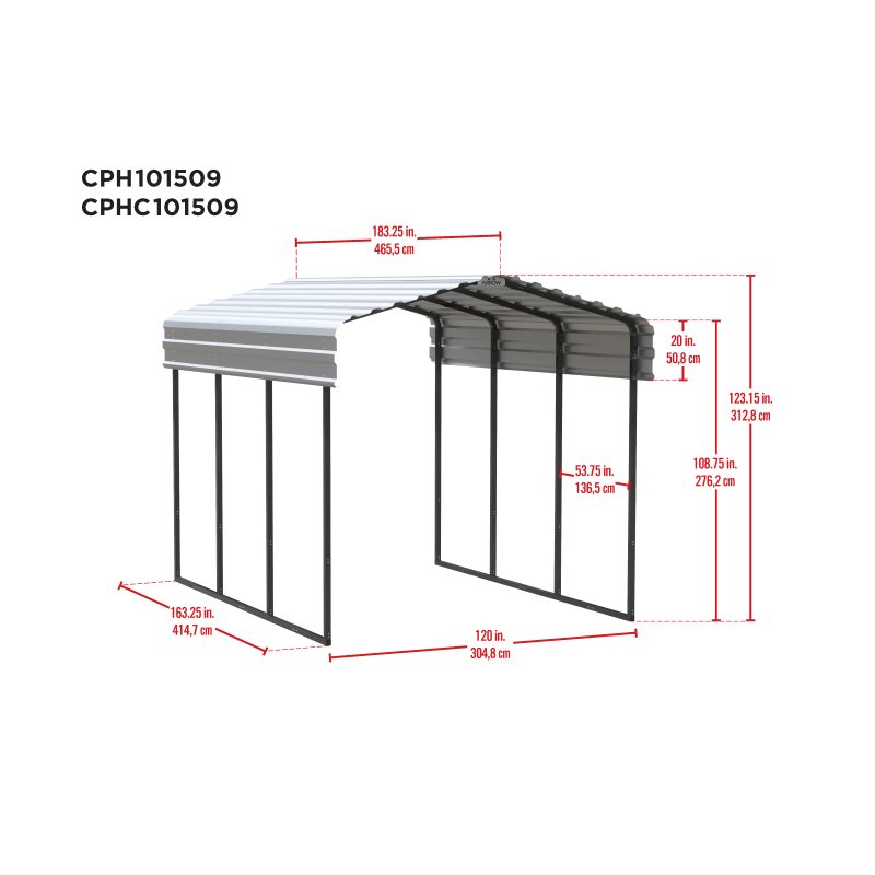 Arrow Steel 10x15x9 Carport Kit - Charcoal (CPHC101509)