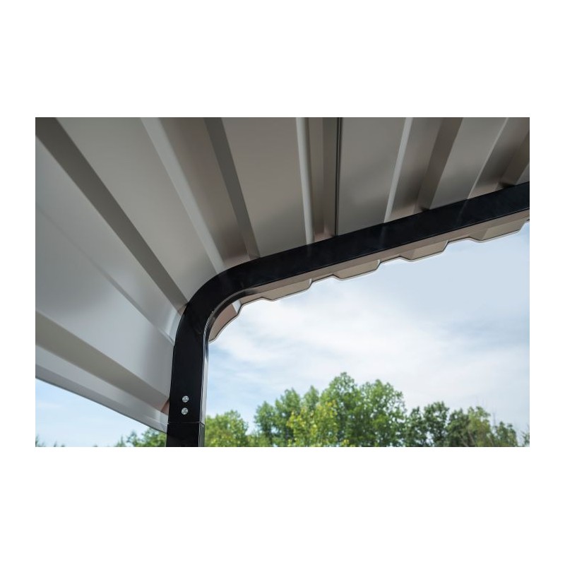 • Roof is an attractive charcoal finish, with a black powder coated steel frame