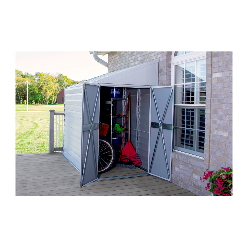 The Yardsaver 4'x7' steel storage building from Arrow is an all-time favorite. The lean-to design lets you place it against any outside wall. For more details, call us at 1-888-757-4337.