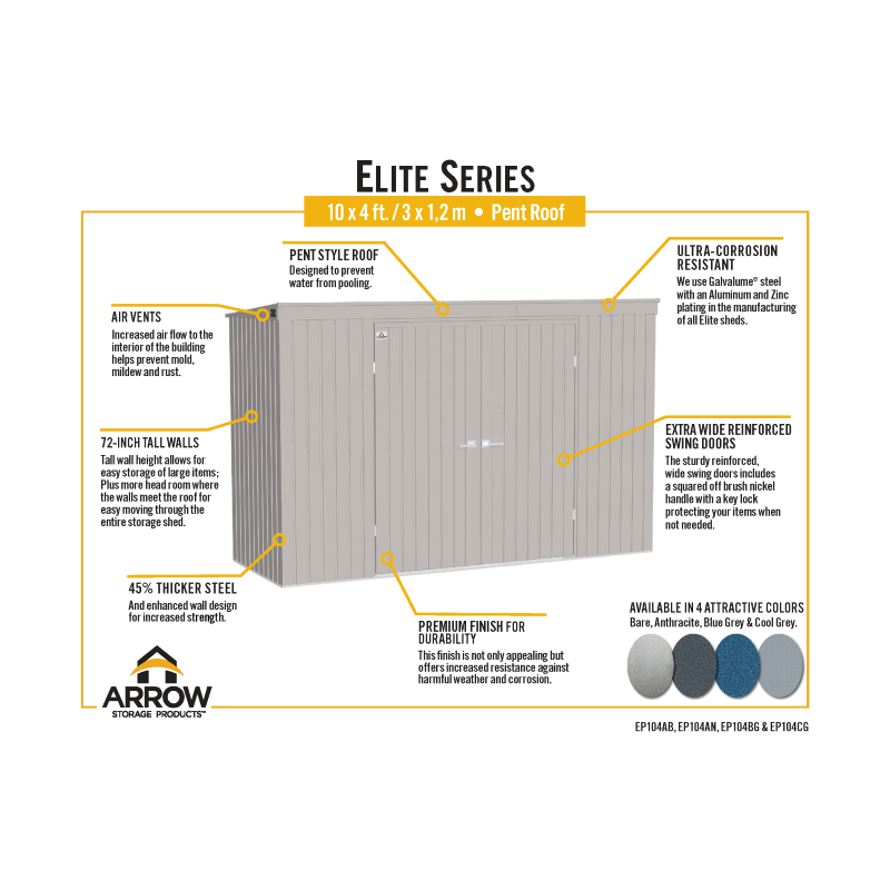 Arrow 10x4 Elite Steel Storage Shed Kit - Anthracite (EP104AN)