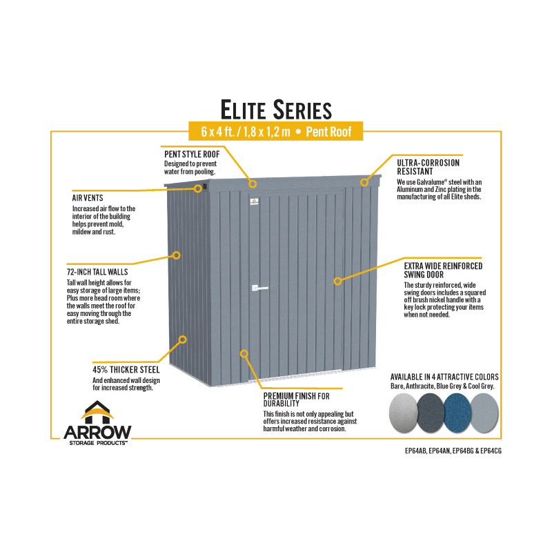 Arrow 6x4 Elite Steel Storage Shed Kit - Cool Grey (EP64CG)