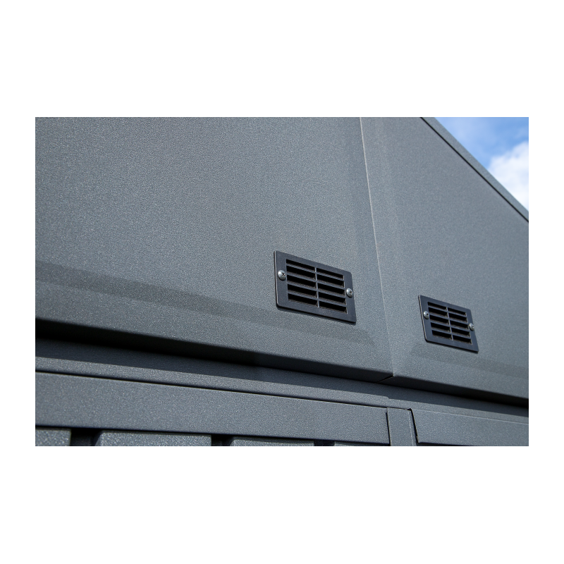 This shed combines a generous 12-foot by 12-foot footprint with the strength of Galvalume steel, ensuring reliable protection against the elements for years to come. The Elite series sheds boast a generous 72-inch wall height, providing ample headroom and additional walk-around space. The sturdy reinforced swing-open doors feature a brushed nickel key-lock handle, ensuring effortless access to the interior and allowing for efficient storage along the front wall. Its spacious interior offers ample room for storing garden tools, equipment, patio furniture, and more, making it an ideal addition to your backyard or garden landscape. Equipped with wide double swing doors, accessing and storing items of various sizes is convenient and hassle-free. The doors are lockable, providing added security to safeguard your belongings from unauthorized access. Easy to assemble with basic tools and minimal effort, you can assemble the shed efficiently and start utilizing its storage capacity quickly. This shed is designed for exceptional durability.