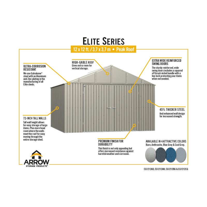 Arrow Elite 12x12 Steel Storage Shed Kit - Cool Grey (EG1212CG)