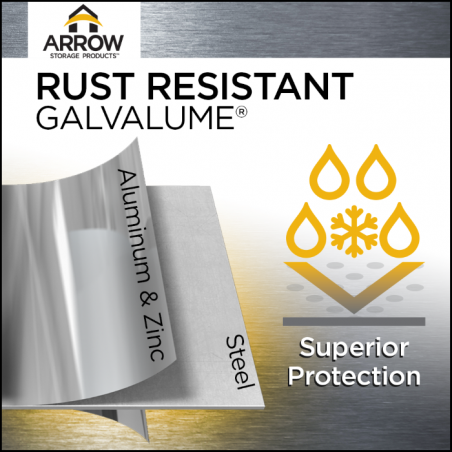 Whether you need extra storage space in your backyard or a place to keep your outdoor equipment safe and organized, the Arrow Elite 12x16 Steel Storage Shed Kit in Cool Grey is a practical and reliable choice. Made of galvalume steel, which is known for its durability and resistance to corrosion. The shed offers a generous 72" wall height for increased headroom and extra space to move around. The sturdy swing-open doors, reinforced with a brushed nickel key lock handle, provide convenient entry to the interior and enable storage along the front wall. It also features a sleek and modern design that complements any outdoor setting. Easy-to-follow instructions and pre-cut components make assembly straightforward. Includes vents to ensure proper airflow and reduce moisture buildup inside the shed. The shed can be locked to secure your belongings.