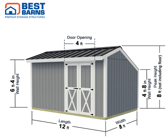 Best Barns Sophisticated Salt Box 8x12 Specialty Wood Shed Kit w/ Offset Eave Barn Doors (SBOXDE12)