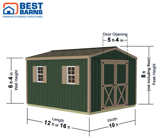 Looking for an extensive space for all of your tools and equipment? This Best Barns Handmade Haven 10x16 Wood Shed Kit – Gable Door will be a great solution. This shed comes with large doors where you can store your mower, tractor, or any vehicle that can fit it. For more details, call us at 1-888-757-4337.