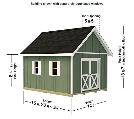 Outside Measurements: 12'W x 16'D x 13'7"H (not including floor if added)