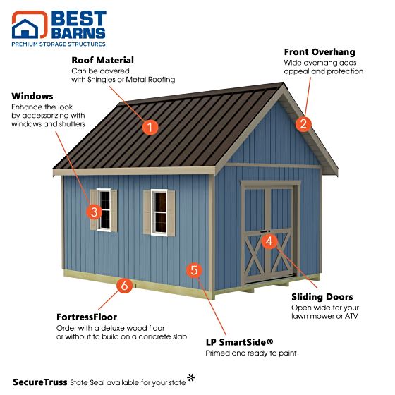Best Barns Planner's Paradise 12x16 Wood Storage Shed Kit - Sliding Doors (PPARSD16)