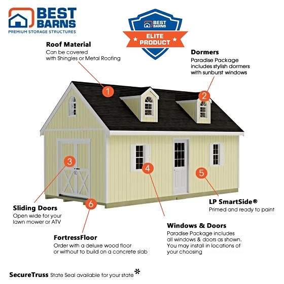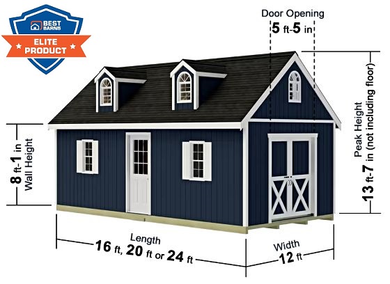 Best Barns Planner's Paradise Elite 12x24 Pre-Cut Wood Shed Kit w/ Sliding Doors & Dormer (PPARSD24DR)