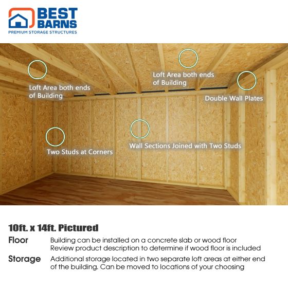 Best Barns Overhang Oasis 10x14 Specialty Wood Shed Kit w/ Deep Eave Overhang (OOASDE14)