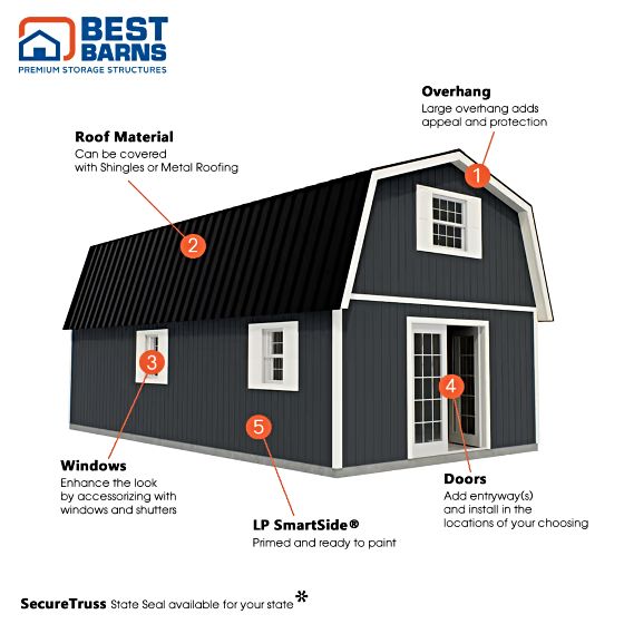 Design a shed that perfectly matches your space, style, and budget with our versatile DIY kit. Built for flexibility and value, this kit includes the essential structural components while allowing you to customize the rest. Add your choice of windows, doors, and copula (sold separately) to create a look that’s uniquely yours with full freedom over layout and placement. Crafted from premium materials, including our SecureTruss system, TimberPrestige imported Eurowood, and precision pre-cut framing, this kit ensures strength, durability, and simple assembly. The LP SmartSide siding comes primed and ready to paint, offering lasting protection and a professional finish.