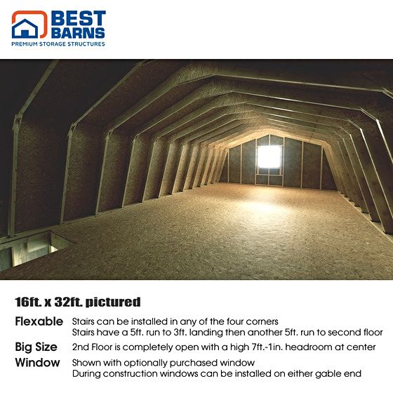 The Best Barns Handcrafted Homestead XL 16x24 Barn Kit can easily be used for a second home, a cabin, a workshop or an office. Or, perhaps you need storage for all your outdoor equipment and tools. For more details, please call us at 888-757-4337!
