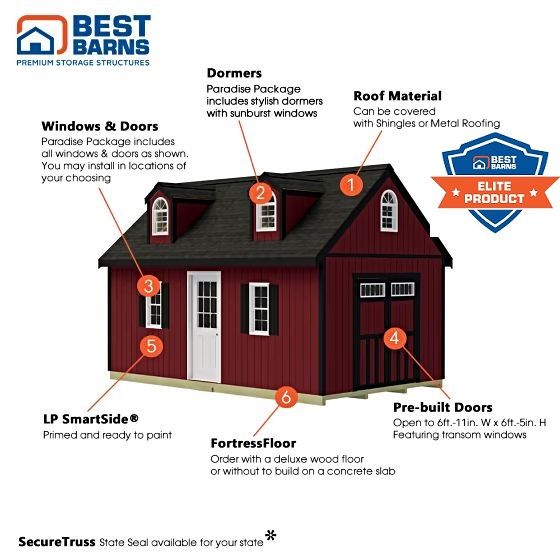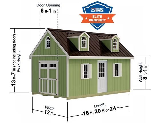 Best Barns Planner's Paradise Elite 12x16 Pre-Cut Wood Shed Kit w/ Transom Doors & Dormers - (PPARTD16DR)