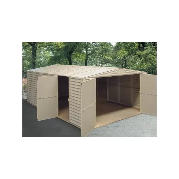 As you would expect from a large storage shed, this walk-in shed features tall and wide double doors. The wall columns are reinforced with a solid metal structure that gives the shed strength and allows you to hang shelves or garden tools. These large storage sheds can also be used as hobby or activity rooms.