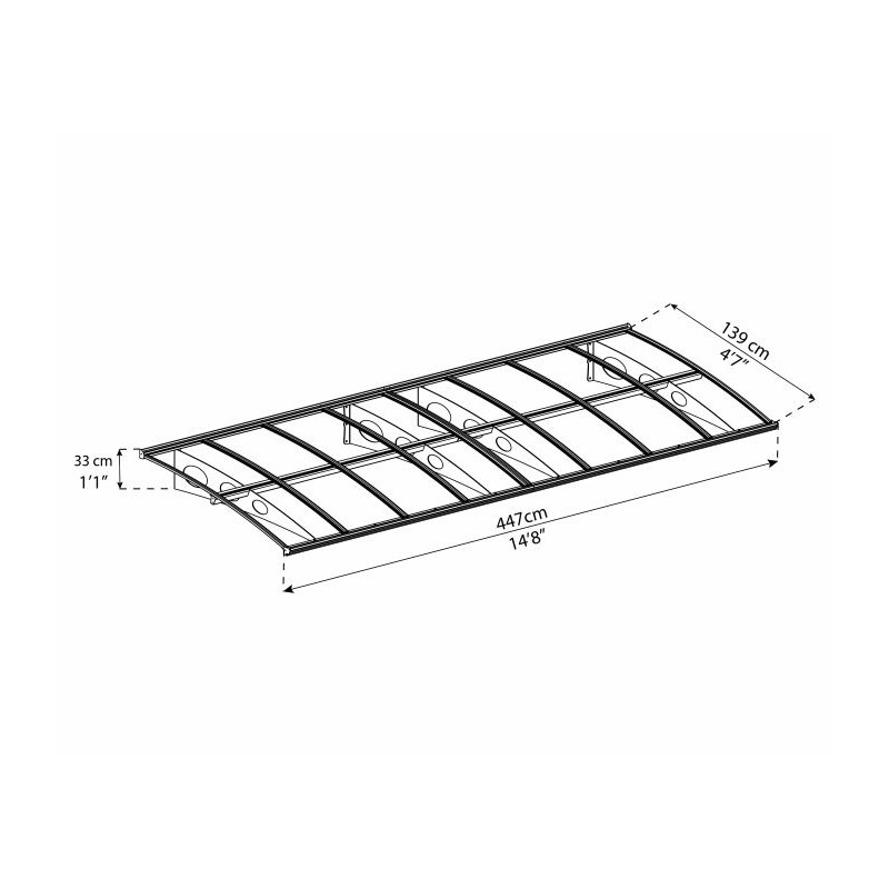 Elevate your entrance with the Palram - Canopia Bordeaux Door Canopy—a seamless blend of rugged durability and striking elegance. Crafted to shield your door, entrance, and facade from the elements while minimizing direct sunlight exposure, this canopy boasts powder-coated, galvanized steel support arms, aluminum front and back trims, and high-impact, 100% UV-resistant solid panels. Its robust, modern design effortlessly complements any home decor, making it a versatile addition to any environment. Enhance your property's value and environmental footprint with this DIY product, engineered for long-lasting durability and timeless style.