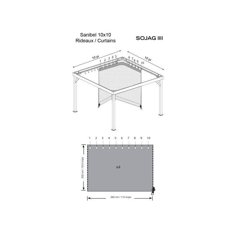 Sojag Ventura 10x10 Gazebo Curtains - Grey (135-9161397)