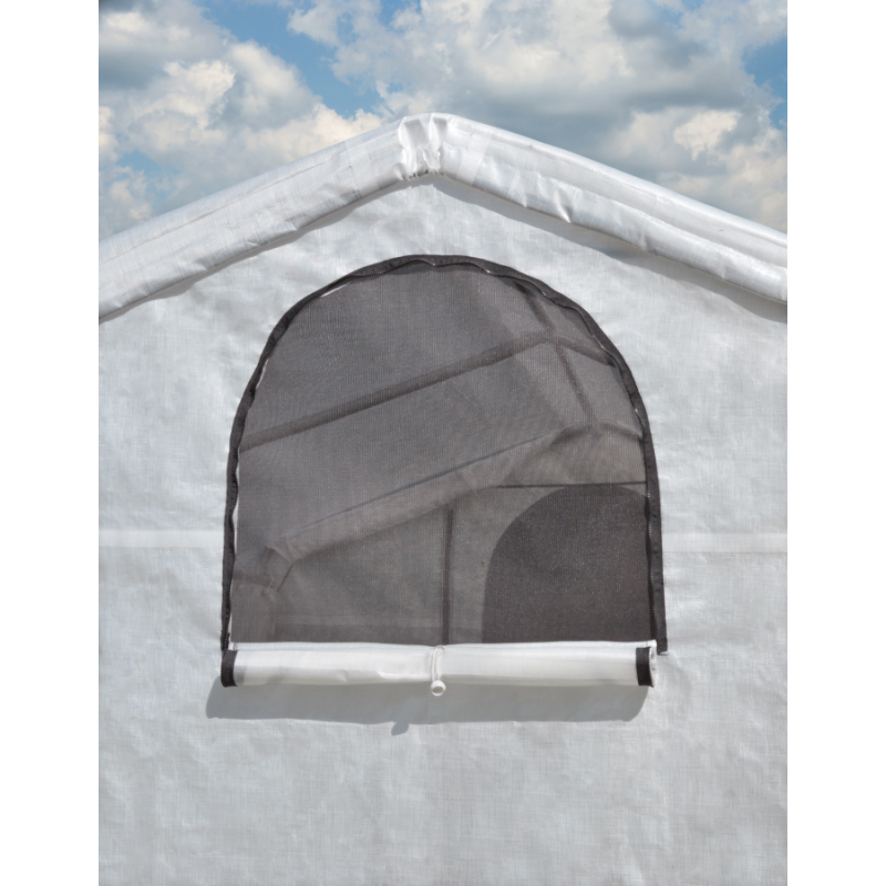 Ideal for gardeners seeking to extend their growing season, this greenhouse is a must-have addition to any backyard. The GrowIT Greenhouse-in-a-Box with EasyFlow roll-up side vents delivers quality construction, quick and easy assembly, and best-in-class value. Ready to build out of the box, the GrowIT Greenhouse-in-a-Box with EasyFlow features a DuPont powder-coated 1-3/8 in. steel frame with ShelterLock steel stabilizers for added strength and durability. The translucent, rip-stop cover is waterproof and UV-treated, providing enhanced illumination - for plant growth and protection. Easy slide cross rails ensure a snug cover fit while Ratchet Tite tensioning provides solid cover anchoring to the frame. EasyFlow side panels and zippered half-moon end-panel vents provide airflow and temperature control.