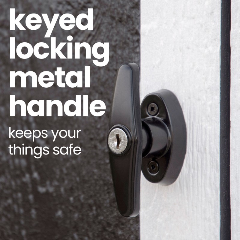 Create unmatched style and beauty with Briarwood's timeless design. It's 48″ wide double door opening, 6’4″ high side walls, and 10′ 2″ high peak will give you ample space to store your equipment. The shed comes with vents for ventilation and a heavy-duty locking T-handle for additional security.