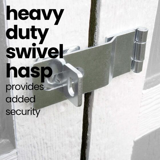 Type of Handle/Lock Included: Heavy-duty, rust resistant swivel hasp