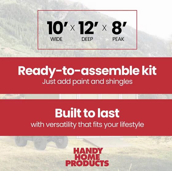 Upgrade your outdoor space with the Handy Home Cumberland 10x12 an economical wood shed kit that offers generous storage with a timeless look. Built for easy DIY assembly, it’s a practical and stylish solution to keep your tools and equipment neatly organized. Free Nationwide Shipping!