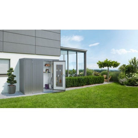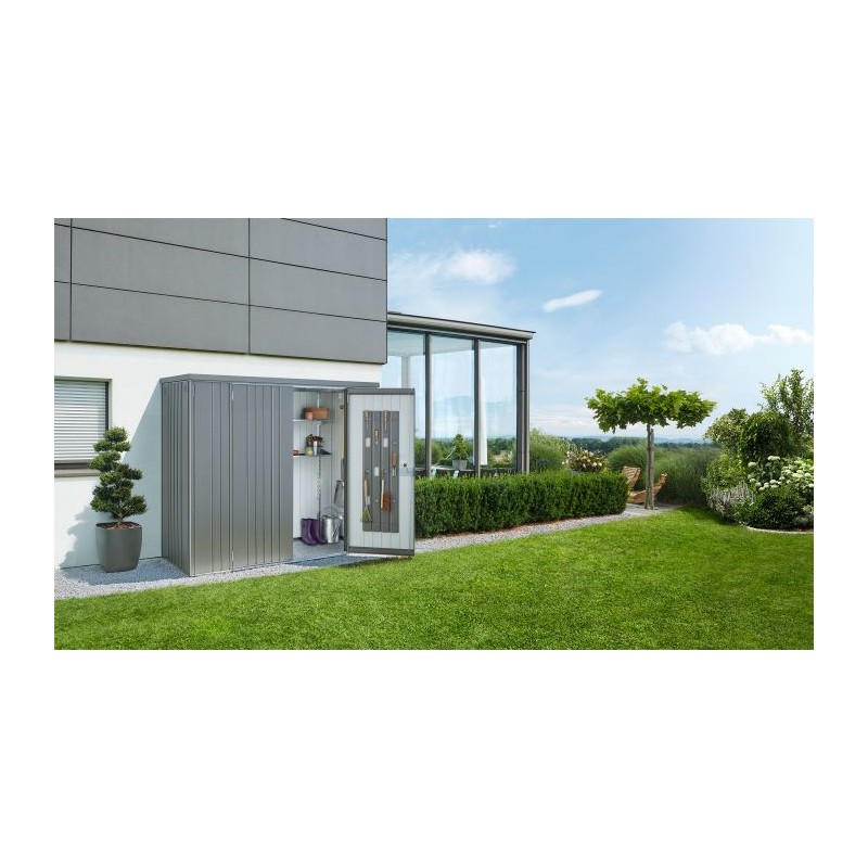 When space is limited, the Biohort Equipment Locker truly shines. Whether in the garden, on the terrace, in the garage, or on the balcony, it provides organized, secure storage without encroaching on your living area. Designed to protect your garden tools, equipment, children’s toys, and other essentials from both rain and theft, this compact unit maximizes storage while minimizing footprint. With its sleek design and compact dimensions, the Biohort Equipment Locker integrates seamlessly into any setting.