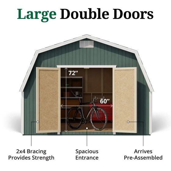 *The Classic Gambrel Barn is equipped with double doors, providing easy access and convenient entry to store and organize your belongings.