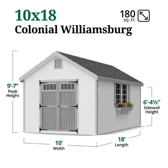 Little Cottage Co. 10x18 Colonial Williamsburg Wood Shed Kit - (10x18 WCGS-PC)