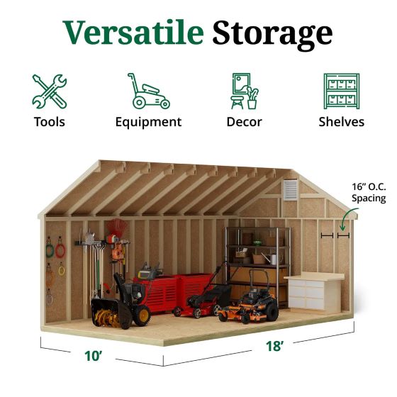 A classic, durable wood garden shed kit featuring timeless Colonial Williamsburg styling, easy-to-assemble pre-cut lumber, and versatile storage space for tools, lawn equipment, and outdoor gear. Designed for customization and built to last, it’s an attractive addition to any backyard. For more details, calls us at 1-888-757-4337!