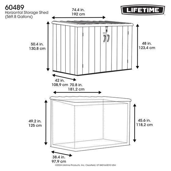 The Lifetime Horizontal Plastic Storage Shed provides reliable, space-saving storage for garbage bins, tools, and outdoor essentials. Built with weather-resistant, steel-reinforced materials and lockable doors, it’s a secure and durable solution with a clean, attractive finish, perfect for smaller spaces. For assistance with your storage needs or any inquiries, call us at 888-757-4337.
