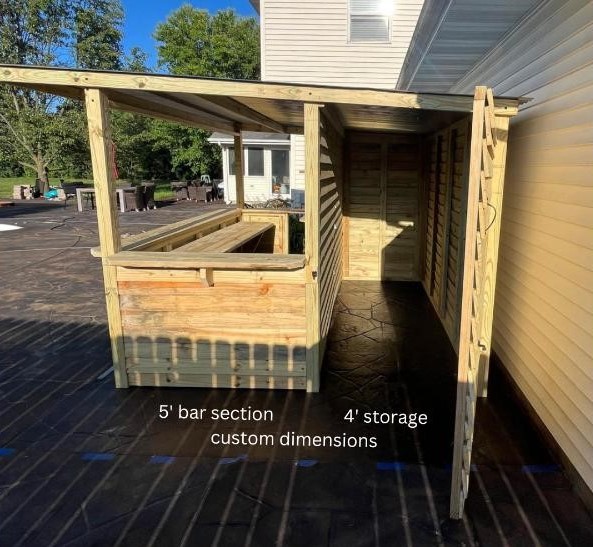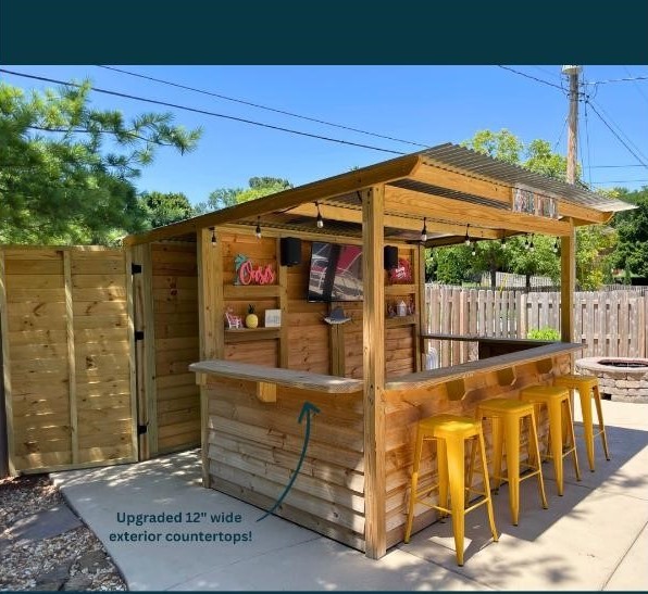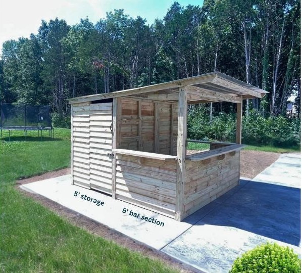 Construction: Wood tavern shed with integrated bar