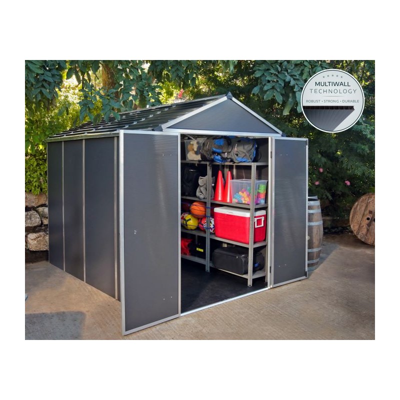 Organize with ease using the Palram - Canopia Rubicon Shed. This 6' x 10' shed in gray provides ample storage space with a durable, weather-resistant design. Store your belongings securely offers robust weather-resistant construction for reliable outdoor storage.