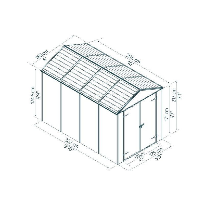 Palram - Canopia Rubicon 6' x 10' Shed - Gray (HG9710GY-1B)