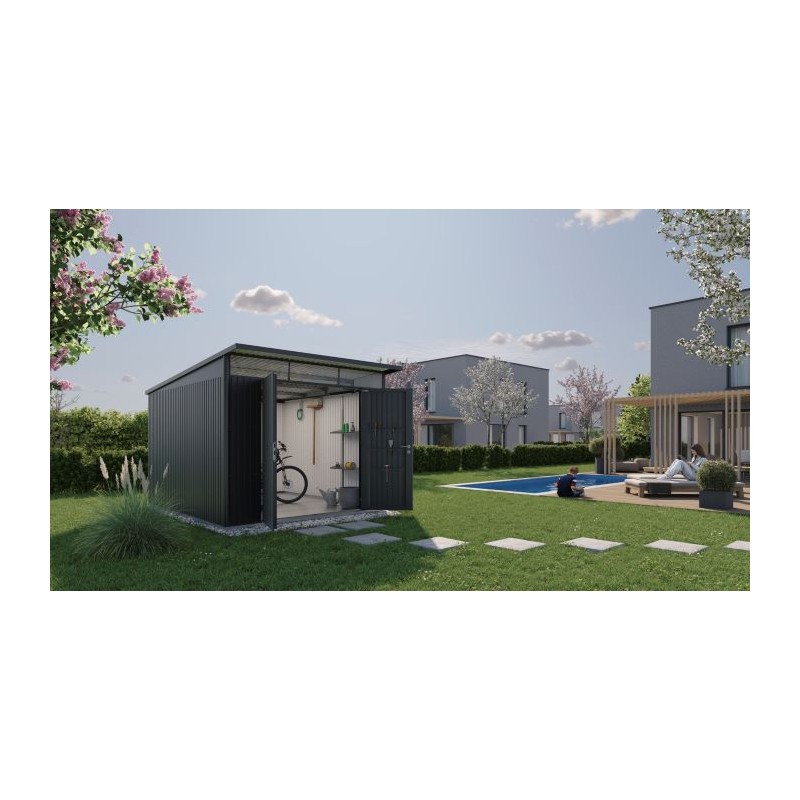 Biohort AvantGarde 12x9 Double Door Metal Shed Kit with Floor - Dark Gray (BIO1123)