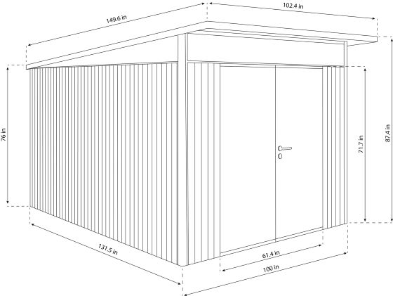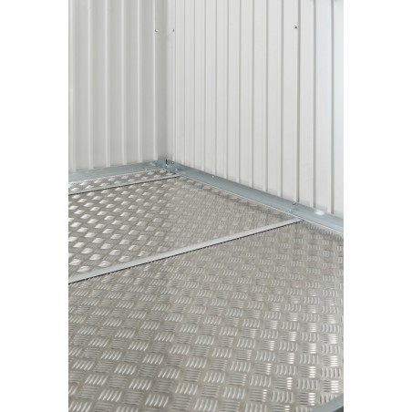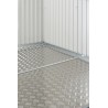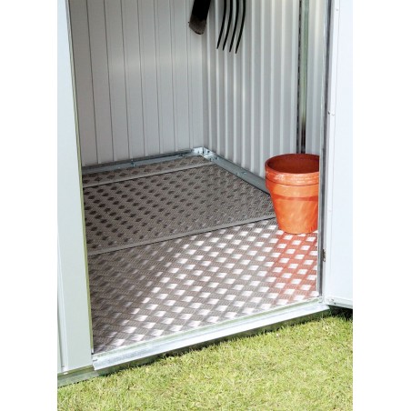 Upgrade your shed with the AvantGarde with Floor Kit, which includes the AvantGarde Shed, floor frame, and floor panels. This highly stable metal shed is designed to meet the demands of modern architecture and is constructed from galvanized steel, ensuring durability and a maintenance-free experience for life. The stainless steel door handle provides secure locking, while strategically placed windows allow natural light in while keeping your belongings safe. The high-quality diamond-plated aluminum panels and floor frame enhance the shed's stability. Please note that the aluminum floor panels require backing with a filler or the included XPS hard foam panels. The floor design facilitates easy entry and exit for lawnmowers, fertilizer carts, wheelbarrows, and other outdoor equipment. With a spacious 106 sq ft area and double doors, you'll have ample room for all your outdoor storage needs.