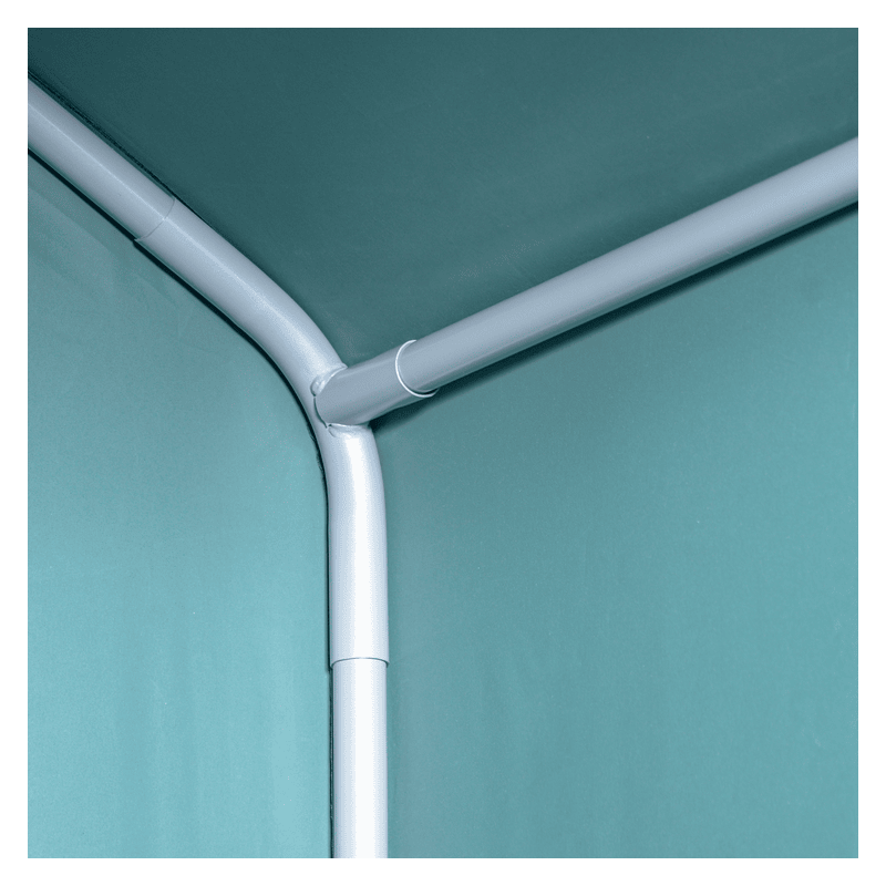 Ideal small storage solution for patios, decks, or the side of your house. It can be assembled in under 30 minutes, providing efficient storage for tight spaces. The frame is made from 1-inch powder-coated carbon steel pipes, and it features a durable, UV-treated 300D polyester cover. This shed is perfect for storing garden tools, pool supplies, and other items you want to keep out of sight. Features a compact design with a green peak, making it a stylish addition to any outdoor space. Its easy assembly ensures that you can set it up quickly and start organizing your space.