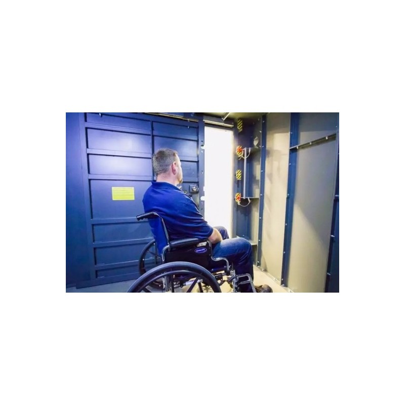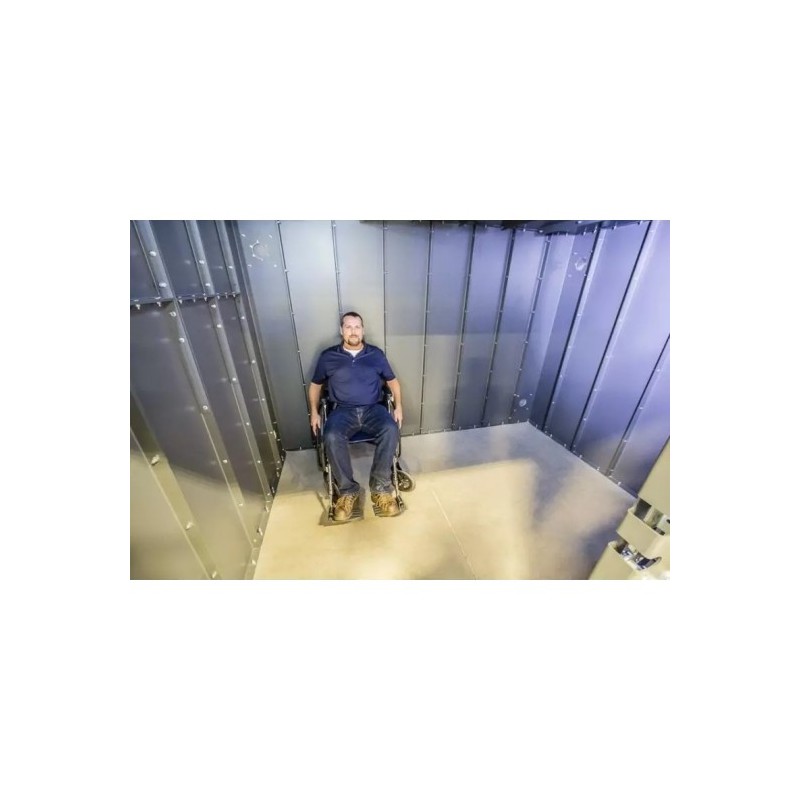 For reliable and durable shelter designed to ensure the safety and well-being of individuals during severe weather conditions. This shelter is thoughtfully equipped with wheelchair access, allowing easy access. With its sturdy construction and spacious interior, it provides both comfort and peace of mind for everyone. For assistance with your storage needs or any inquiries, call us at 888-757-4337.