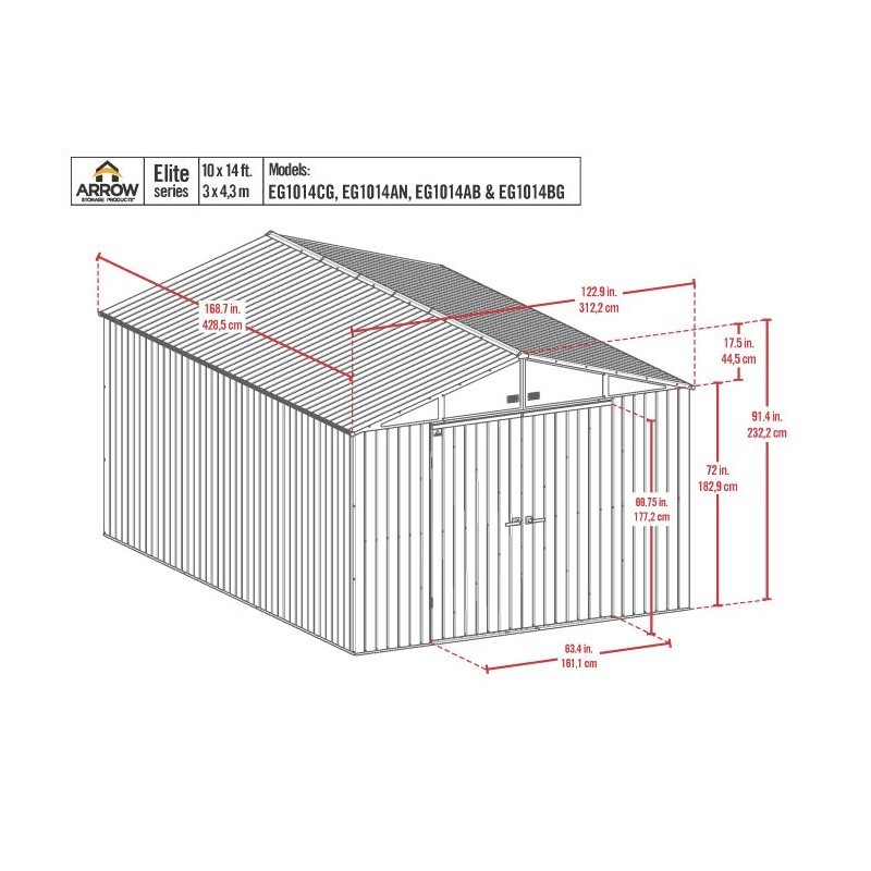 Discover the Arrow Elite series storage shed, where modern design meets enduring strength. Crafted from Galvalume steel with anti-corrosive aluminum and zinc plating, it boasts a 72-inch wall height, reinforced swing-open doors, and gable vents for enhanced airflow. Perfect for those seeking stylish and secure outdoor storage solutions. For assistance with your storage needs or any inquiries, please contact us at 888-757-4337!