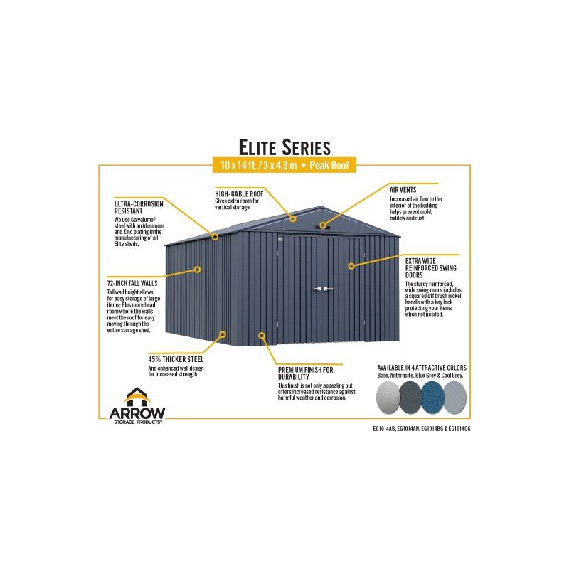 Arrow Elite 10x14 Steel Storage Shed - Galvalume (EG1014AB)
