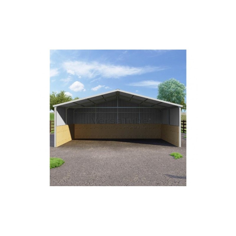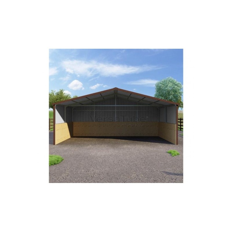 The VersaTube 30' x 12' x 8' Summit-style DIY loafing shed kit delivers rugged steel protection for livestock with superior all-weather durability, featuring a vertical sheet metal design for optimal runoff and longevity, plus quick assembly with pre-cut components and Slip-Fit connections.