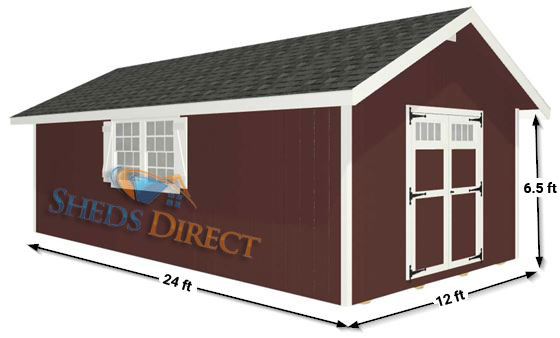 The Homestead 12x24 traditional style shed offers a classic backyard design with durable wood construction and easy-to-assemble panelized components. Ideal for storing tools, equipment, and outdoor essentials, it combines timeless style with reliable functionality in a compact 12x24 footprint. For more details call us at 1-888-757-4337.