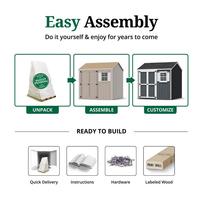 Little Cottage Co. Pre-Cut 8x12 Classic Gable Wood Shed Kit - (8x12 CGS-PC)