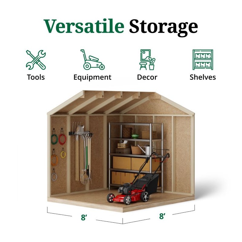 The Value Gable Shed with Floor is a stylish and functional storage solution featuring a classic gable roof design. Perfect for storing garden tools, outdoor equipment, or seasonal items, it offers ample headroom and a spacious interior for easy organization. Customize the exterior to match your home or garden aesthetic, and enjoy the durability and charm this shed brings to your outdoor space. For more details, please call 1-888-757-4337.