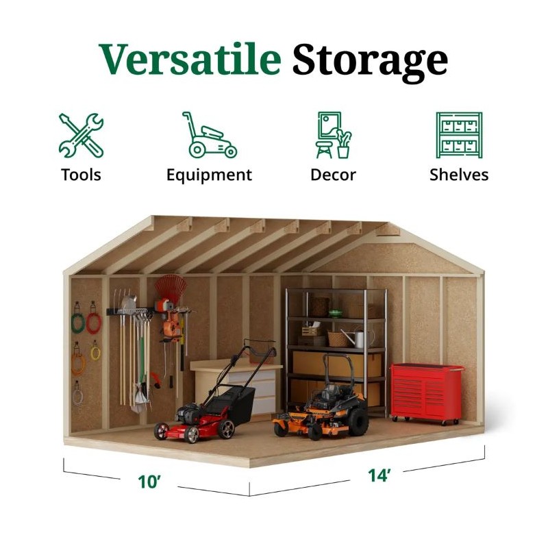 The Value Gable Shed features a classic gable roof design, perfect for storing garden tools, outdoor equipment, or seasonal items. With ample headroom and a spacious interior, it offers easy organization and access. Customize the exterior to match your home or garden aesthetic. Durable and visually appealing, this shed is an ideal addition to any outdoor space. For more details, please call 1-888-757-4337.