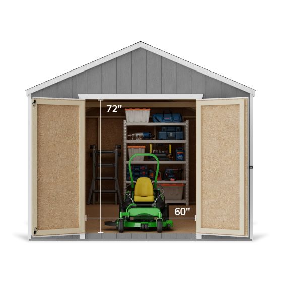 Easy access with wide, pre-assembled double doors. Perfect for moving tools, equipment, and larger items in and out effortlessly.