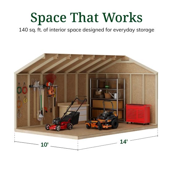 Step inside the 10x14 Value Gable Shed and enjoy full headroom and a spacious interior. Perfect for storing tools, outdoor gear, and seasonal items with ease.