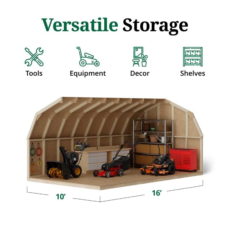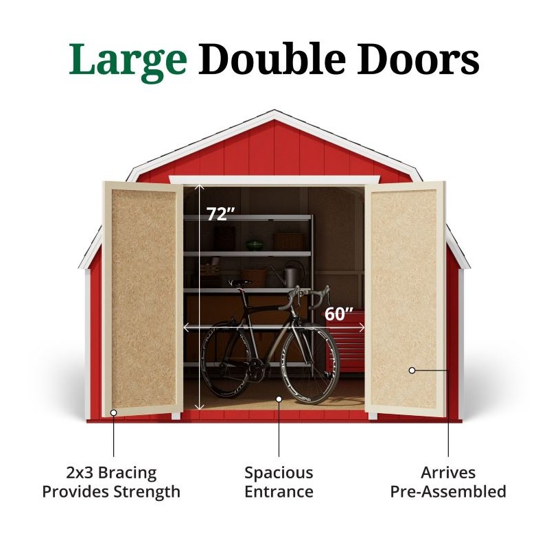 The Value Gambrel Barn with 4-ft Sidewalls is an ideal blend of classic barn-inspired aesthetics and modern functionality. Its distinctive gambrel roof not only enhances the visual appeal but also maximizes overhead storage, making it perfect for storing lawn equipment, seasonal decorations, and other essentials. With wide double doors, accessing your items is effortless. Constructed with durable 2x4 framing and high-quality LP® SmartSide® siding, this barn is built to withstand the elements, ensuring longevity and reliability. Transform your yard with this stylish and practical addition that meets all your storage needs.