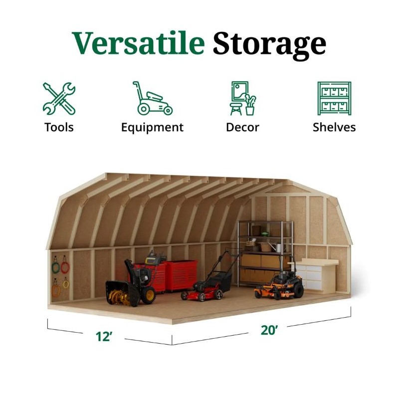 Enhance your outdoor storage capabilities with the Value Gambrel Barn featuring 4-ft Sidewalls. This shed boasts a spacious interior with a classic gambrel roof that provides ample overhead storage space for a variety of items, from gardening supplies to recreational gear. The wide double doors allow for easy entry and exit, making it convenient to access your belongings. Built with sturdy 2x4 construction and resilient LP® SmartSide siding, this barn is designed to withstand the elements while adding a charming touch to your yard. Choose the Value Gambrel Barn for a stylish, functional, and durable storage solution.