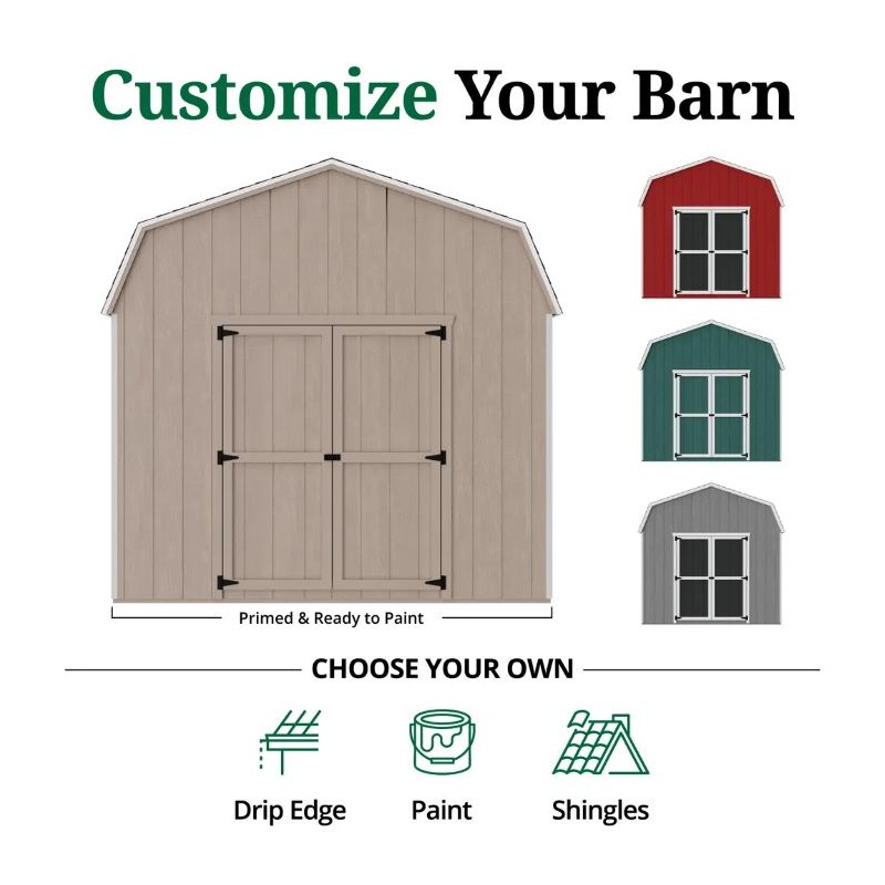 Transform your outdoor space into a functional haven with our Value Gambrel Barn featuring 6-ft sidewalls. This expertly designed barn optimizes your storage potential, allowing you to take full advantage of its generous vertical space. Whether you're organizing gardening tools, seasonal decorations, or outdoor equipment, the ample height and roomy interior provide the perfect solution. The charming gambrel roof not only enhances the aesthetic appeal of your backyard but also adds to the overall architectural interest of your property. Personalize your barn by choosing from a variety of paint colors and shingle styles, ensuring that it complements your existing landscape and reflects your individual taste. Elevate your storage game and enjoy a stylish, practical addition to your home with our Value Gambrel Barn.